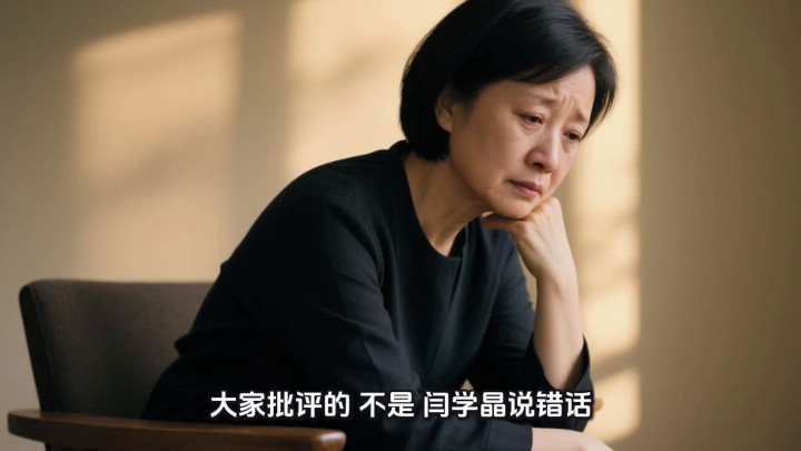 大家好,我是闫学晶。我怀着十分沉重的心情向大家诚恳道歉。事情刚出来那一两天我整个人是懵的,看到网上那么多人说我,我第一反应是惊讶、委屈,但等我真正鼓起勇气仔细看大家的批评时才一下子被戳醒了。那些留言句句扎心:你忘了你的根在哪儿了。