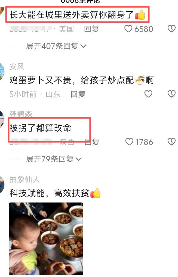 我觉得根本问题不在钱上,有些地方确实穷,但土豆、豆腐、白菜这些便宜又有营养的东西,他们不去买,不是买不起,而是不明白这些东西对孩子有多重要,还有人把孩子当成劳动力,大孩子带小孩子,小的还没断奶就蹲在地上啃馒头,更可怕的是村里没人管,学校老师也管不了,因为父母没违法——孩子没饿死,也没被打死,法律就管不着。